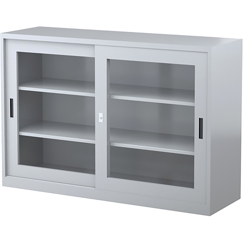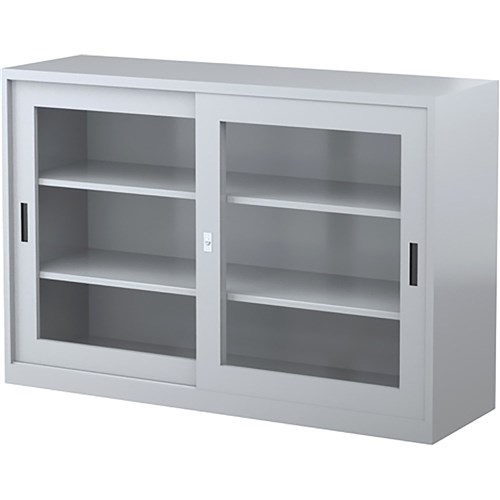 • Steelco Sliding Glass Door Cabinet 2 Shelves 1500W x 465D x 1015mmH Graphite Ripple