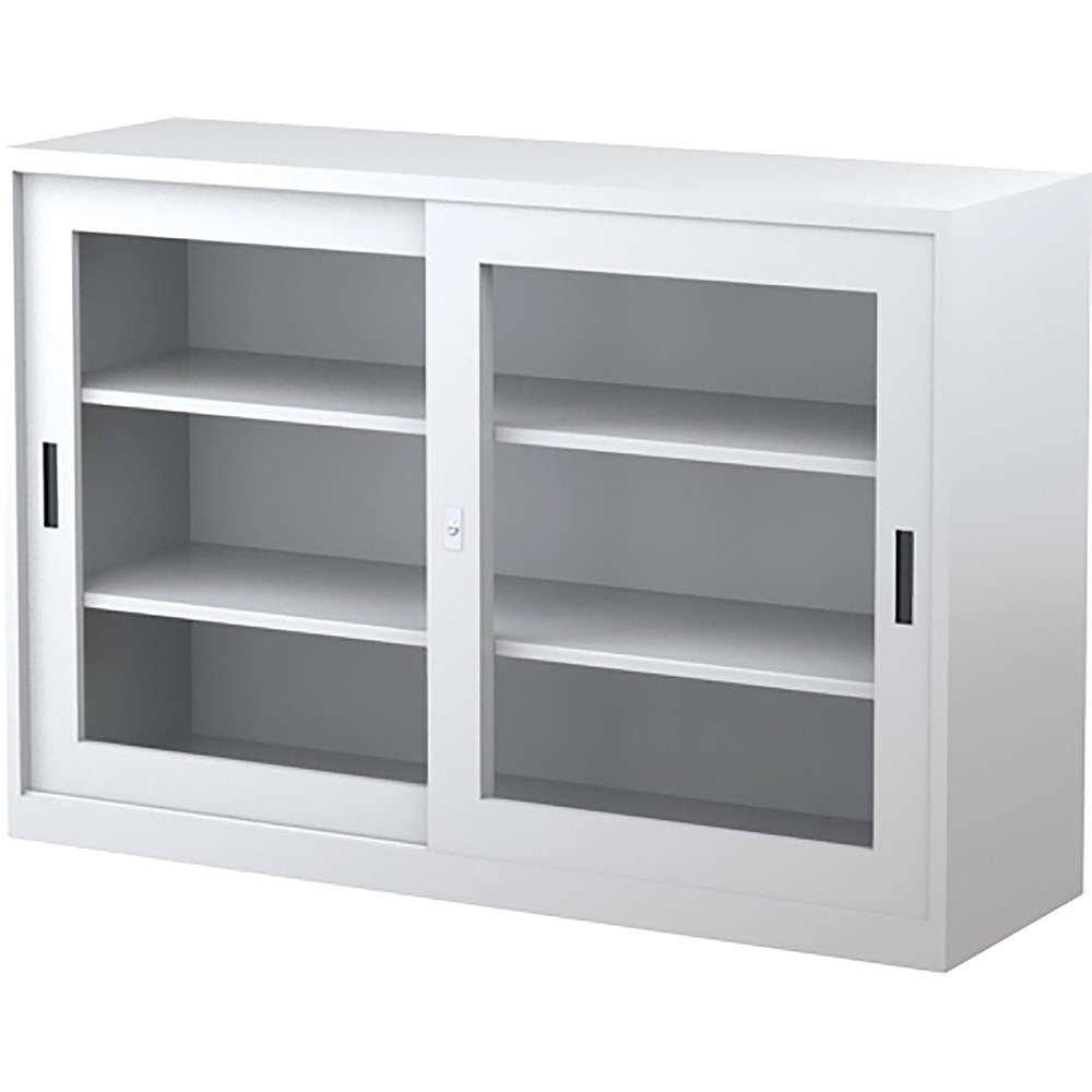 • Steelco Sliding Glass Door Cabinet 2 Shelves 1500W x 465D x 1015mmH Silver Grey