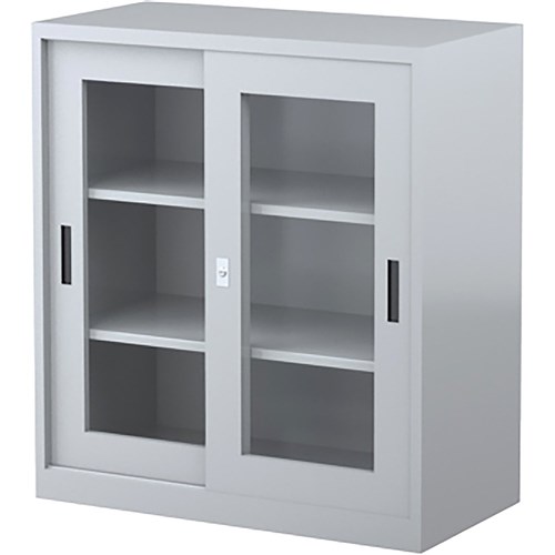• Steelco Sliding Glass Door Cabinet 2 Shelves 914W x 465D x 1015mmH Graphite Ripple