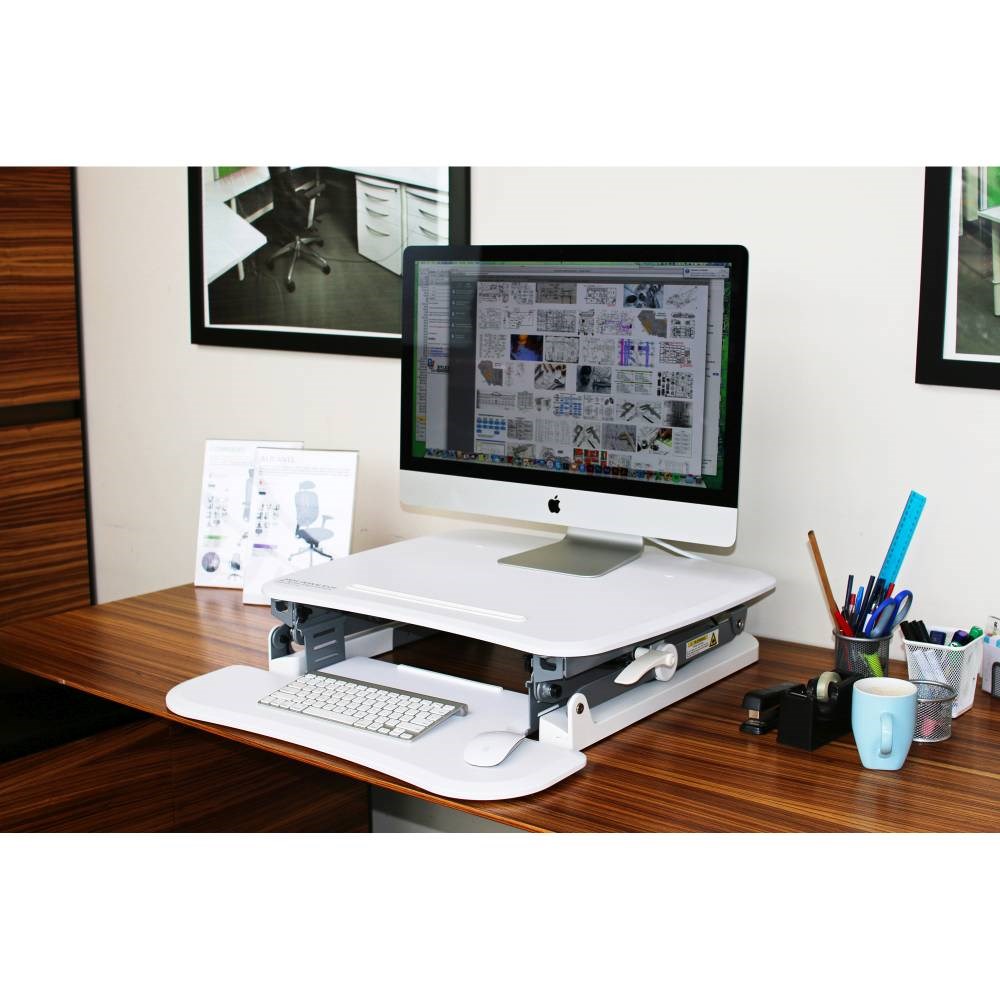 • Arise Deskalator sits on your existing desk and lets you change posture through the day.