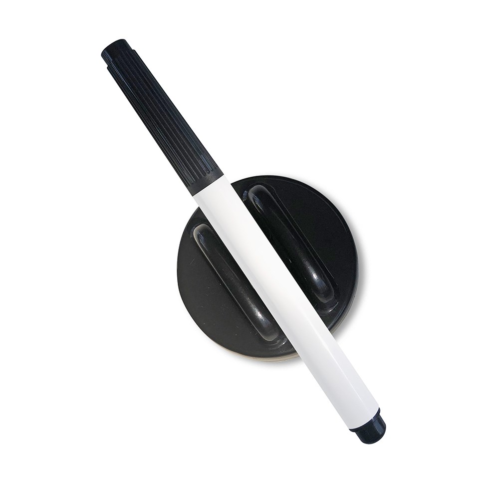• 50mm diameter eraser, Black fine point whiteboard pen.