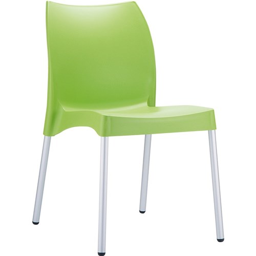 Vita Hospitality Dining Chair Indoor Outdoor Use Stackable Aluminium Legs Green Shell