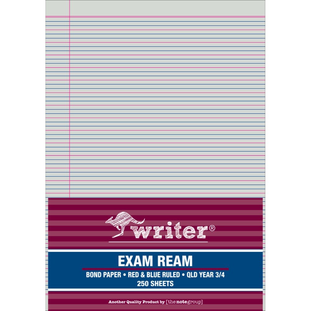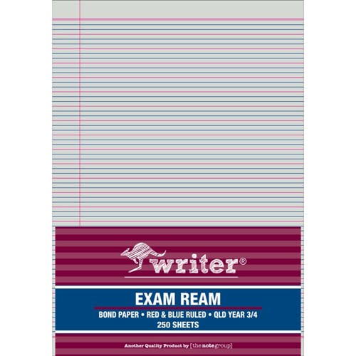 Writer Exam Ream A4 QLD Year 3/4 Red And BLue Ruled Portrait Ream Of 250 White