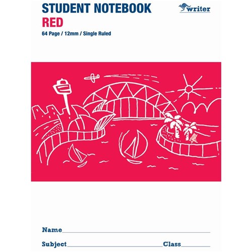 Writer Student Notebook 175x250mm 12mm Single Ruled 64 Pages Red