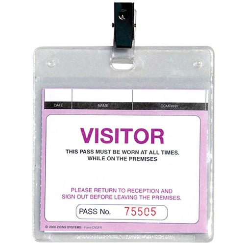 Zions WCVSFR Plastic Wallet Visitors & Contractors Pass With Clip Pack of 25